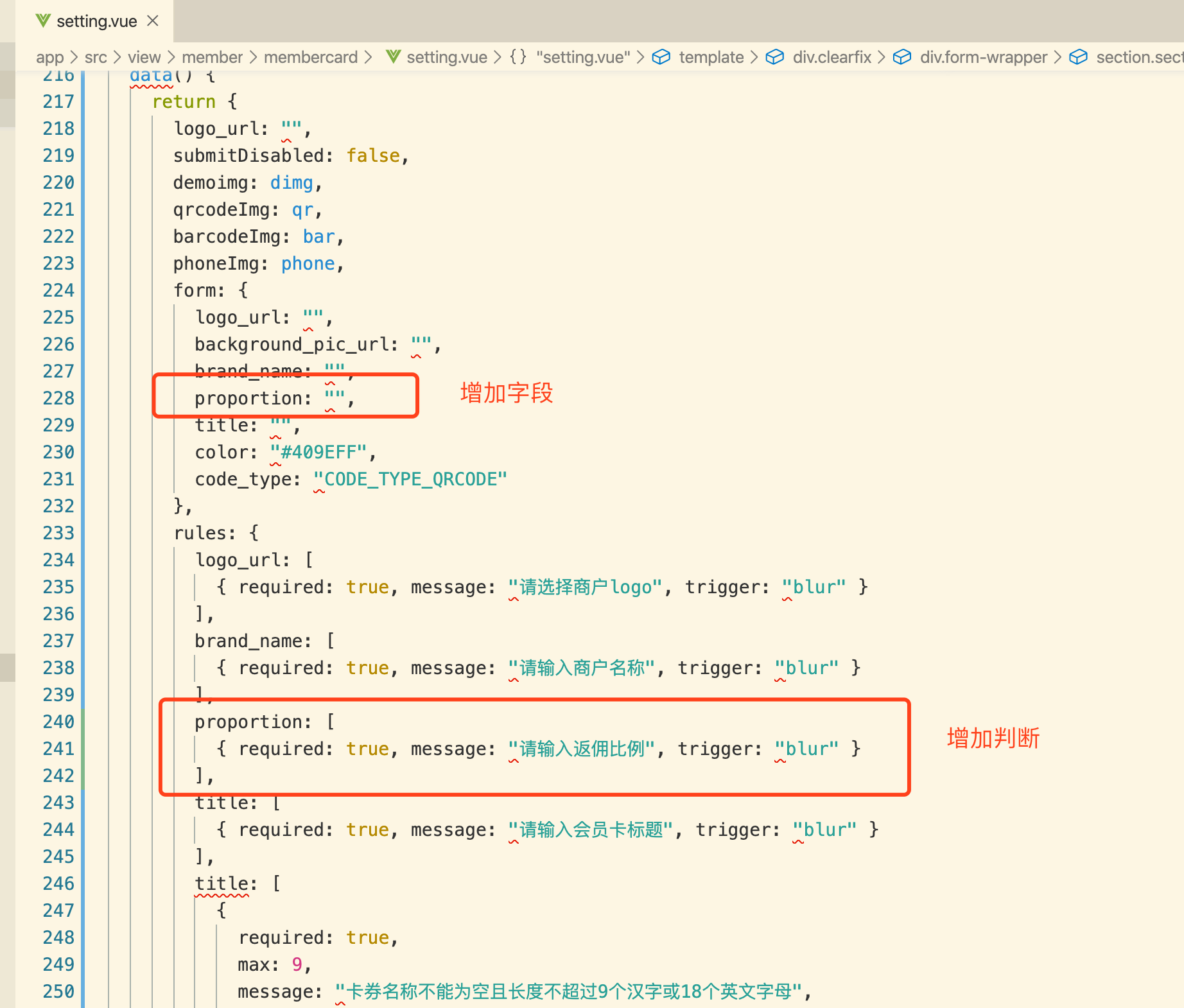 代码路径:/app/src/view/member/membercard/setting.vue