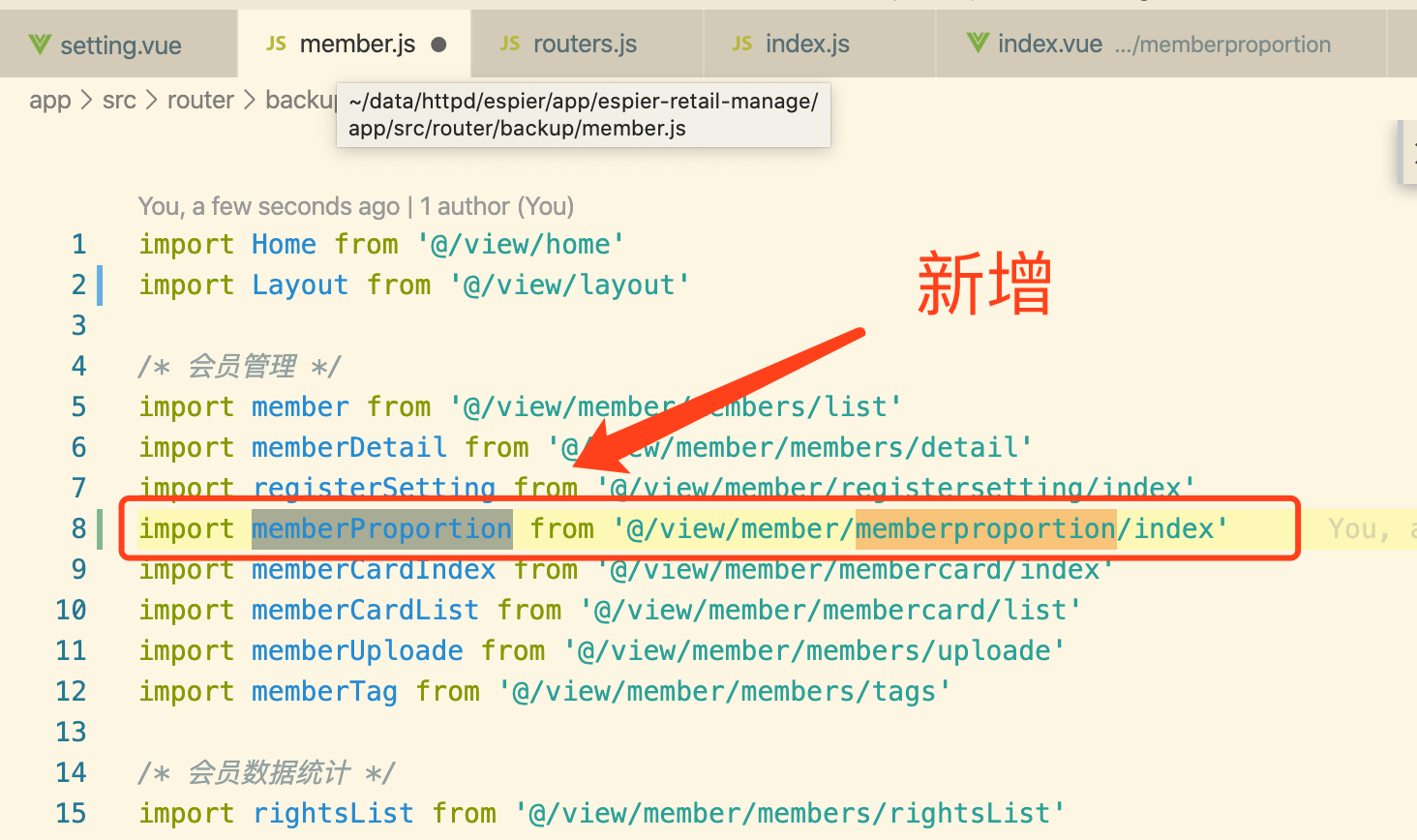 代码目录:app/src/router/backup/member.js