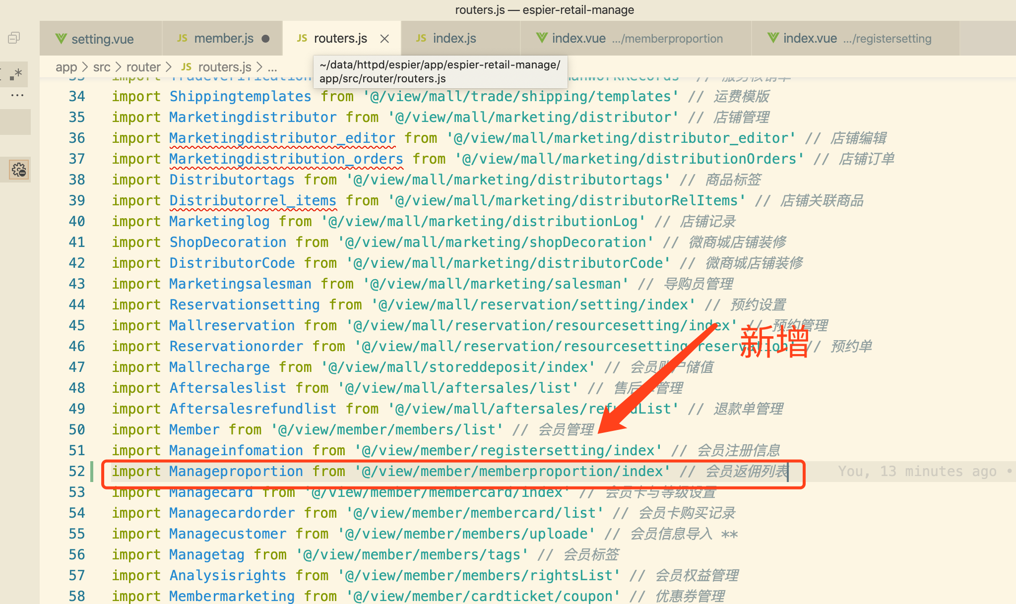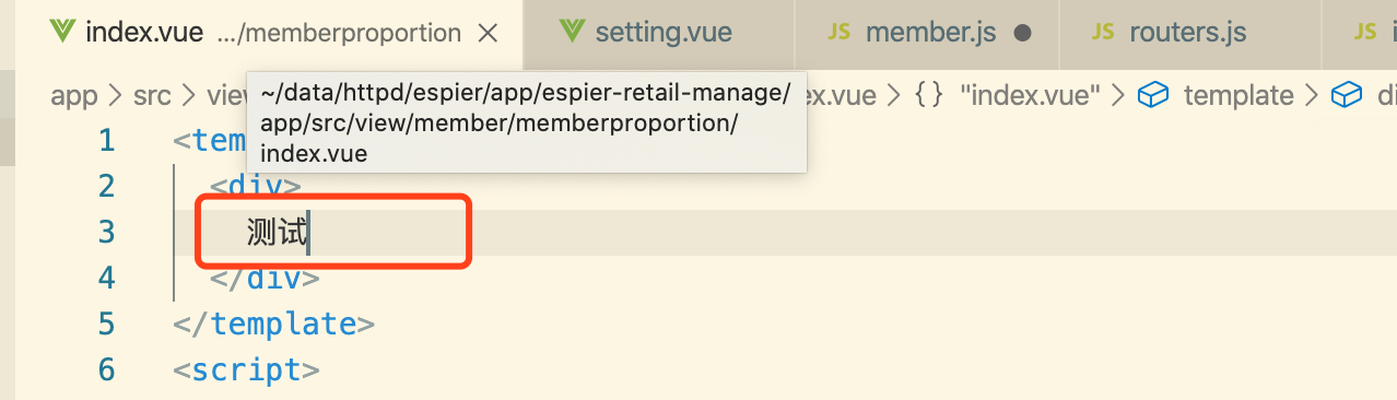 最后新增目录与文件:app/src/view/member/memberproportion/index.vue