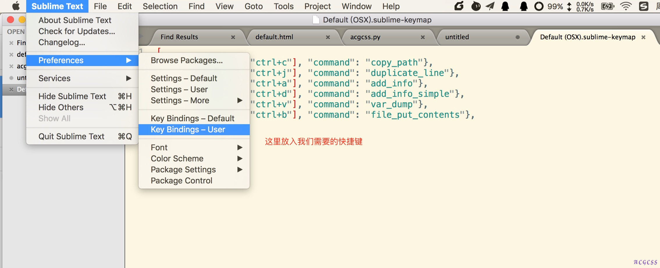 SublimeText常用命令设置方法与代码如下