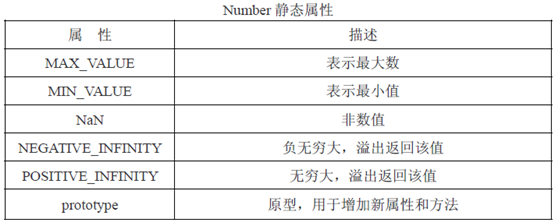 也可能通过Number.POSITIVE_INFINITY 和Number.NEGATIVE_INFINITY 得到 Infinity(正无穷)及-Infinity(负无穷)的值。