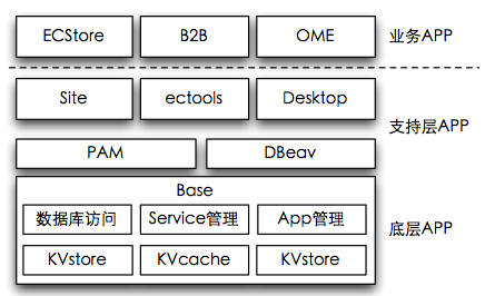 所有的开发资源都从属于某一个app, 每个app拥有自己的表, controller, model, view, library, service等资源. 我们推崇最小化部署原则, 将大的任务拆解为可独立部署的app单元