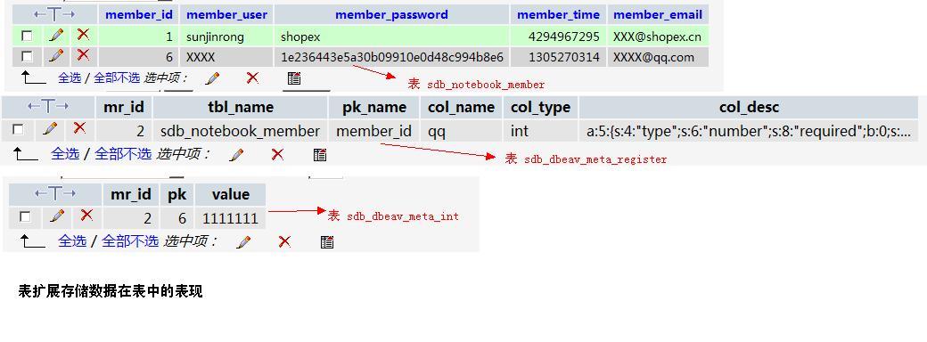 注册字段成功后我们会发现在sdb_dbeav_meta_register表中会有一条这样的记录