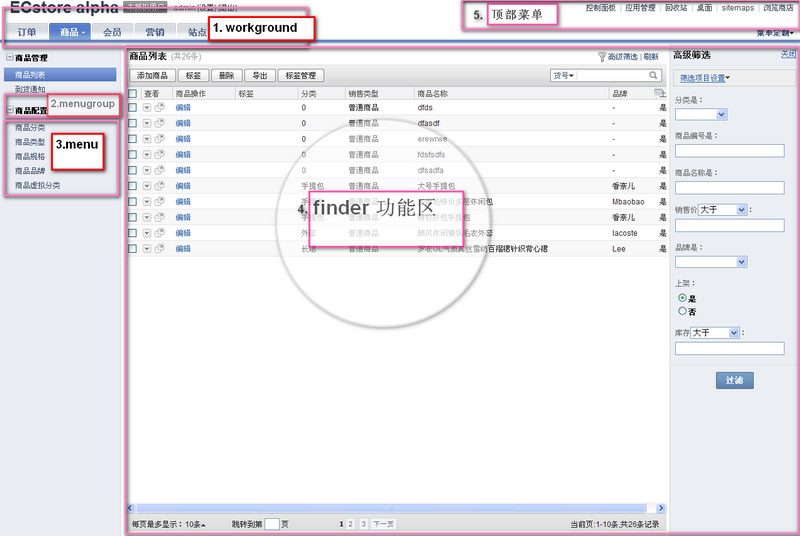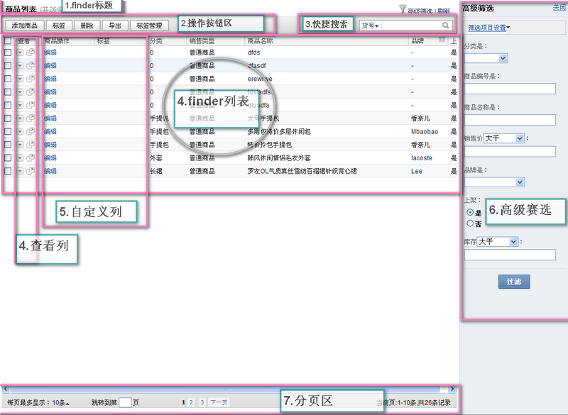 后台的控制器必须继承desktop_controller,继承后才有finder方法,下面介绍下finder方法的几个参数:title: 【图 finder】中的【1区】显示出来的内容