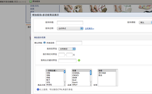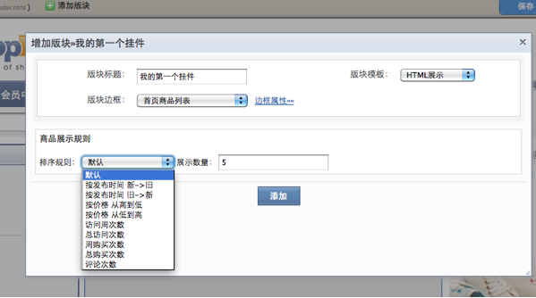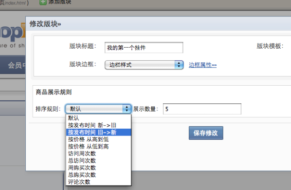 例如一个“商品板块挂件”,它要先由后端语言(php)来组织数据,然后返回到“挂件级页面模板”。组织数据的条件将会独 立出一个可配置页面。