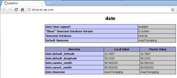 我们在php设置中看到默认时区是上海时间,如图1;在应用中phpinfo()打印出来在date中查看,如图2