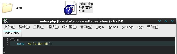 建立一个index.php文件,里面输入php语言'Hello World' 如图11