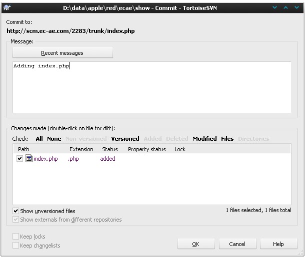 svn add index.php svn ci -m 'adding index.php' index.php