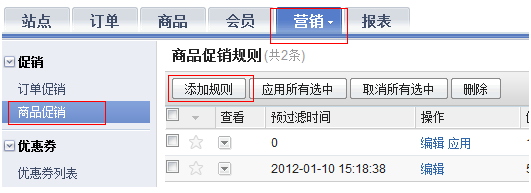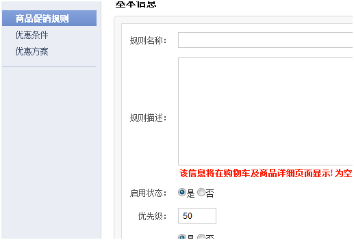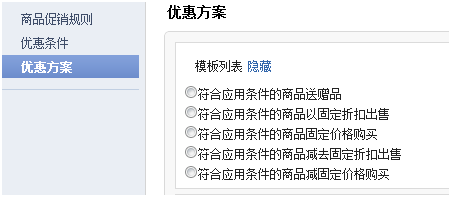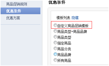 指定优惠方案的应用范围,特指订单促销当中,商品促销中没有此项。