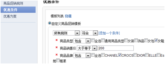 优惠条件,就ecstore系统来说就是商品促销或者订单促销中的优惠条件,是一个过滤规则