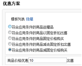 下面重点讲优惠条件的添加,我们这里仍然讲的是怎么组合,具体的代码方法稍后祥讲,这里商品自定义促销模版如下: