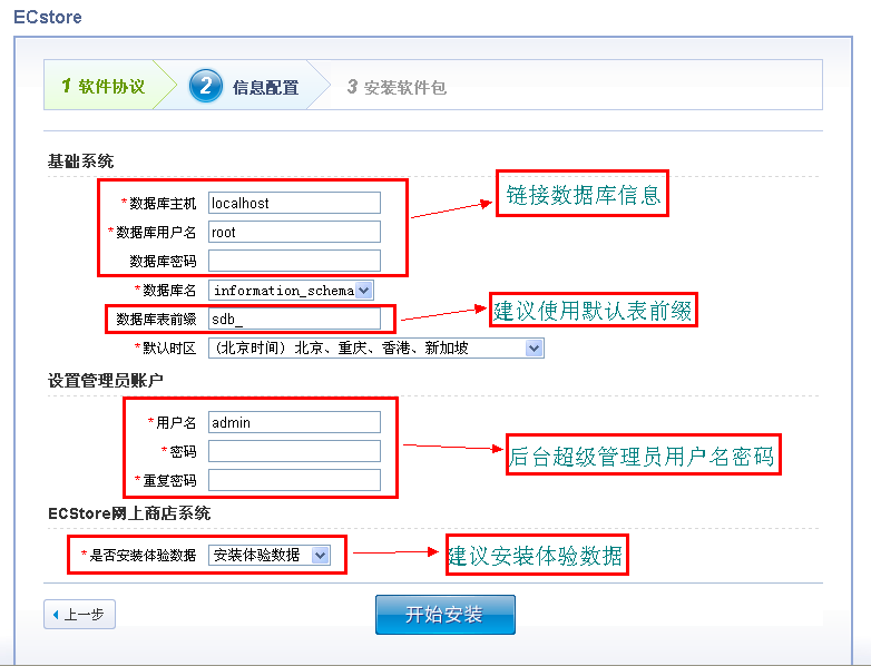说明: (1).如果数据库信息不正确,此界面中不会出现数据库名,需要与系统运维确认。 (2).此处设置的管理员拥有系统最高权限。