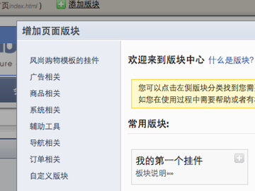 例如一个“商品板块挂件”,它要先由后端语言(php)来组织数据,然后返回到“挂件级页面模板”。组织数据的条件将会独 立出一个可配置页面。