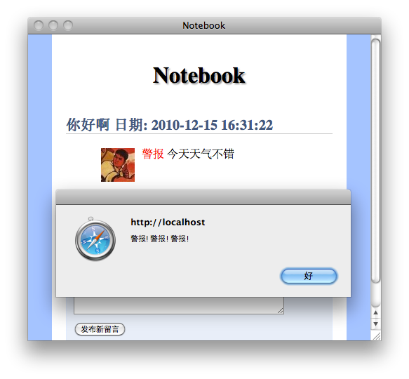 return '<span style="color:red" onclick="alert(\'警报! 警报! 警报!\')">警报</span>';